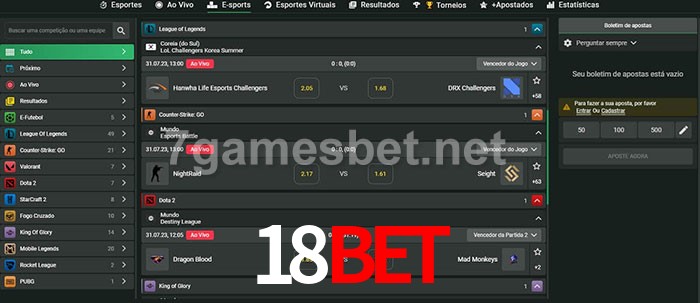 A aposta 18Bet oferece aos jogadores a experiência mais conveniente de apostas em eSports!